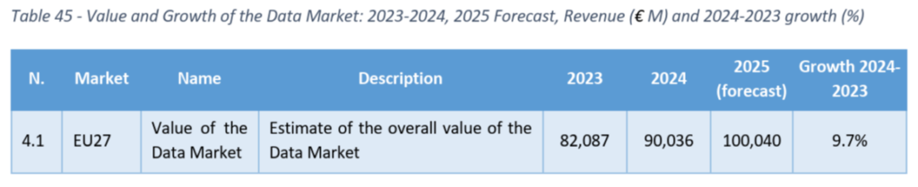 For an illustration of the this, see the chart above from the European Data Market Study 2024-2026 showing that the data market is growing further every year.